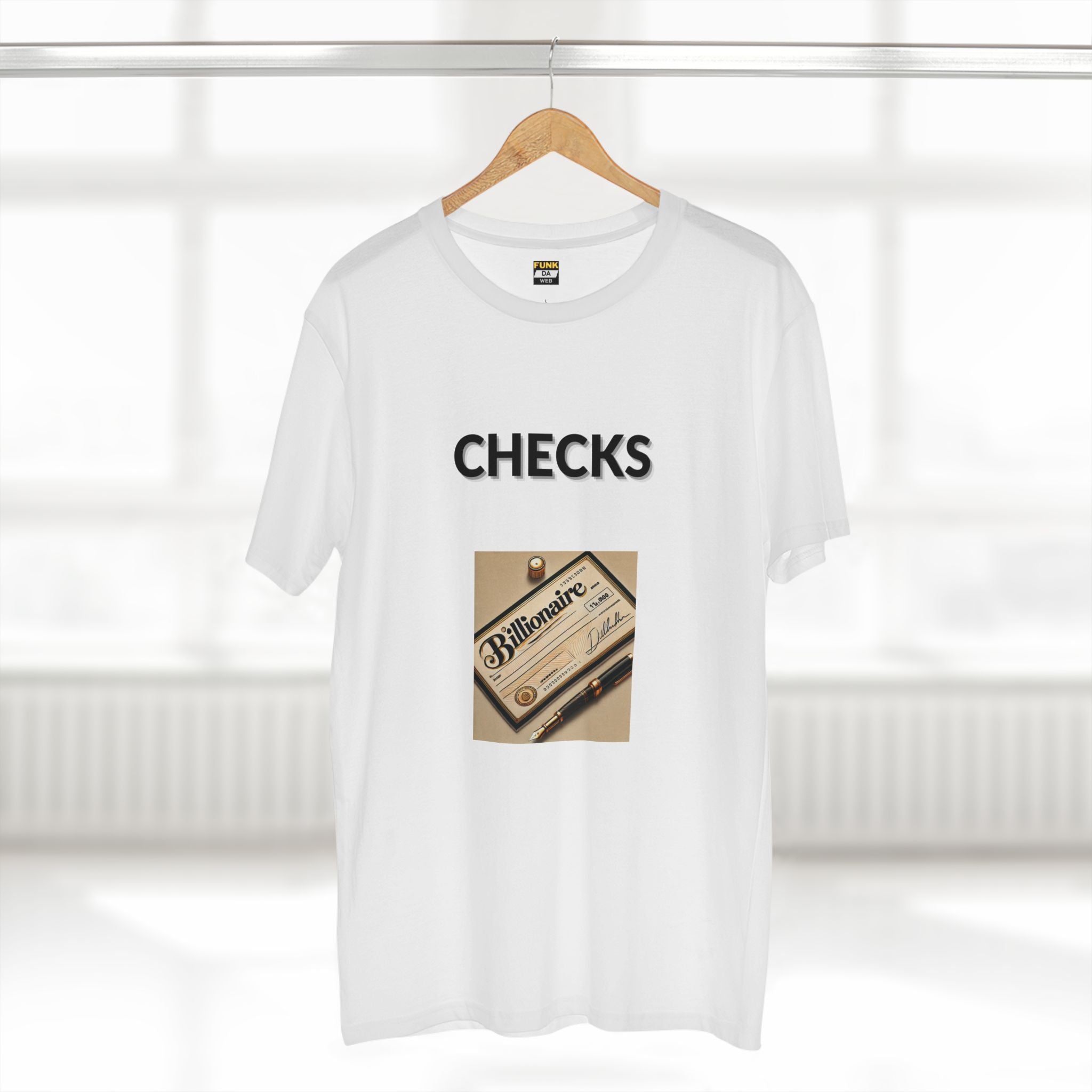 Cash in on your dreams with the "Checks" tee. Featuring a cheque with the word "Billionaire" written across it, this design is all about ambition, wealth, and dreaming big. Wear it if you’re serious about your success — and ready to make it happen.