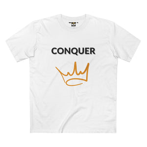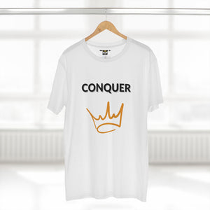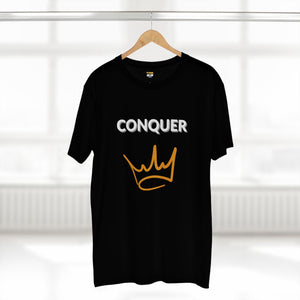 You were born to conquer. The "Conquer" tee features a stylish crown, a symbol of power, victory, and dominance. Whether you’re ruling your day or your dreams, this shirt is your crown — wear it with pride.