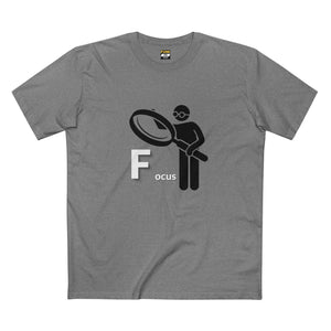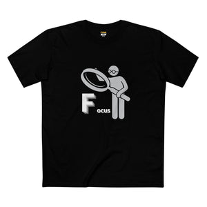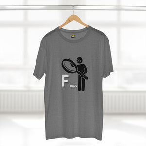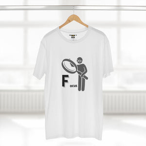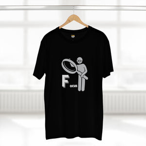 What you focus on, you magnify. The "Focus" tee features the letter "F" highlighted under a magnifying glass, symbolizing the power of focus in your life. When you direct your energy towards the right things, everything else fades into the background.