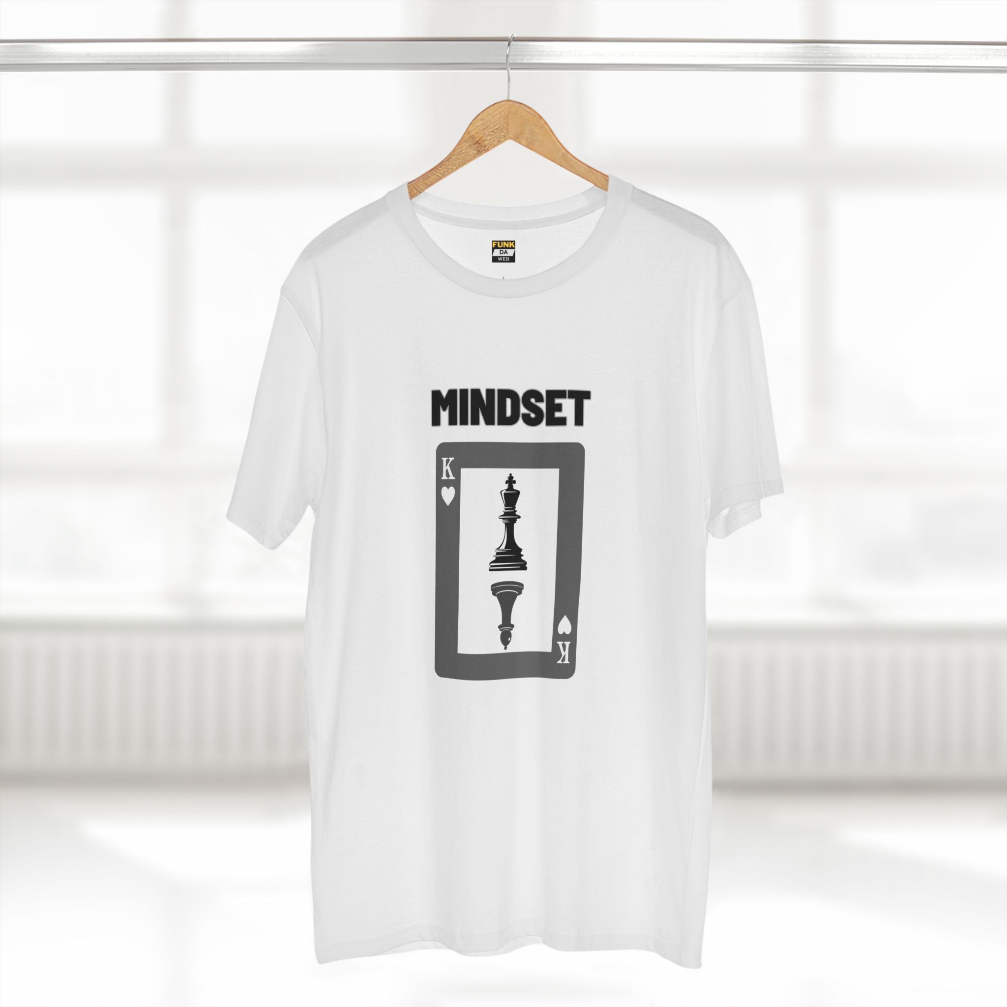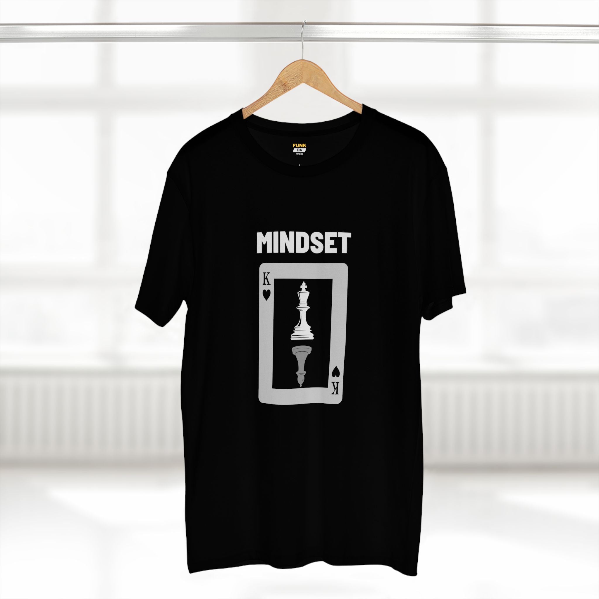 Your mindset determines your destiny. The "Mindset" tee showcases a King chess piece on top and an inverted pawn at the bottom, a visual metaphor that it’s your mindset that defines whether you’re a King or a pawn. Stay strong, focused, and believe in your greatness.