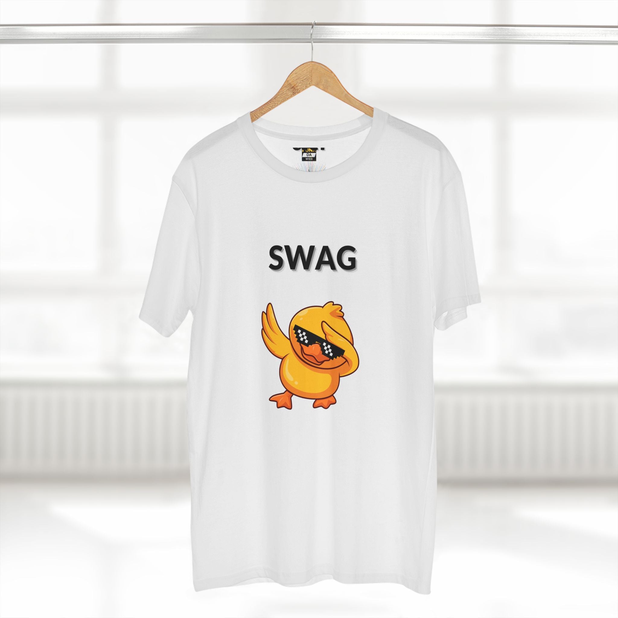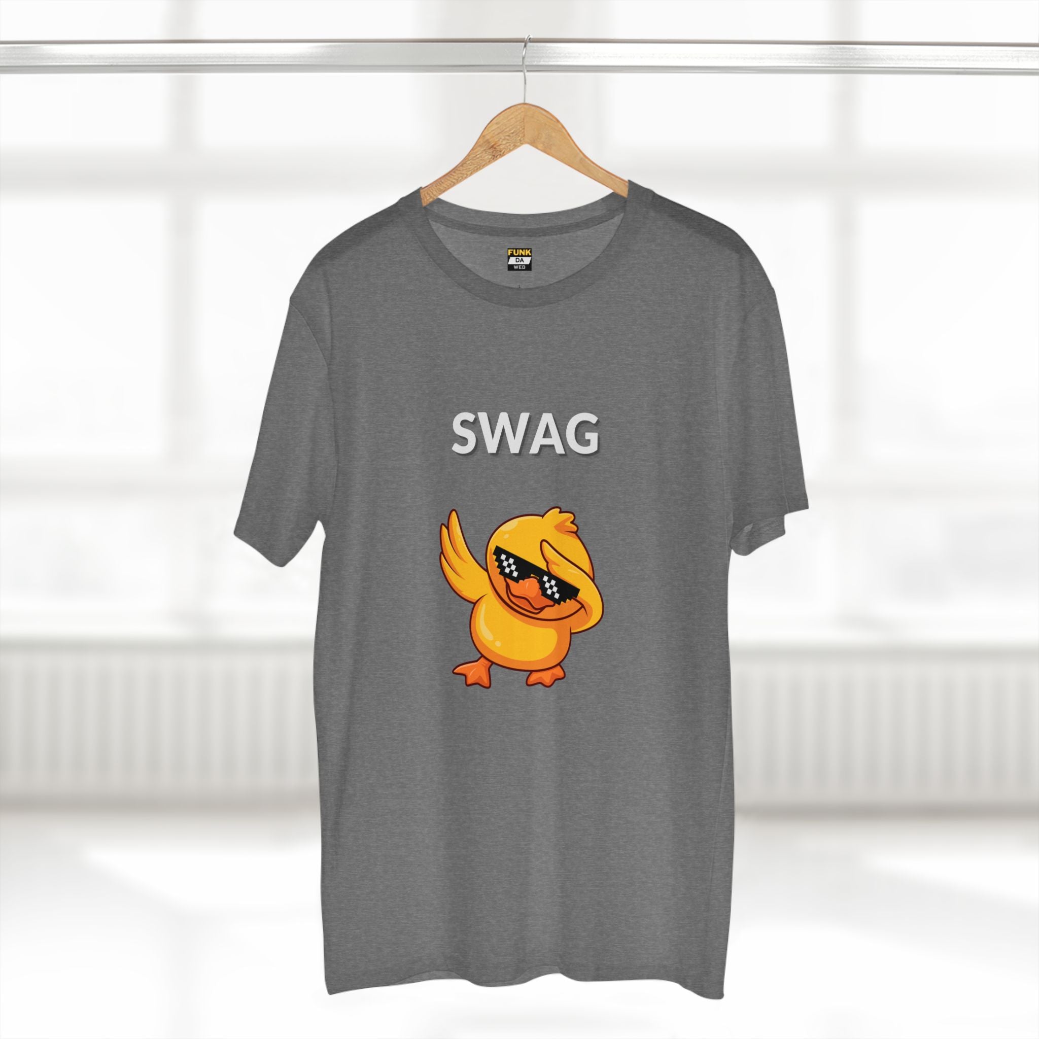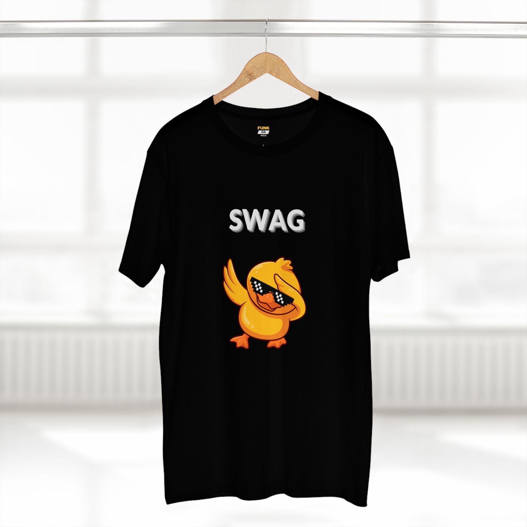 Cool, confident, and effortlessly stylish, the "Swag" tee features a duck with glasses doing a dap. This fun, lighthearted design is perfect for anyone who knows they’ve got that swag factor. Show off your coolness with this playful design.